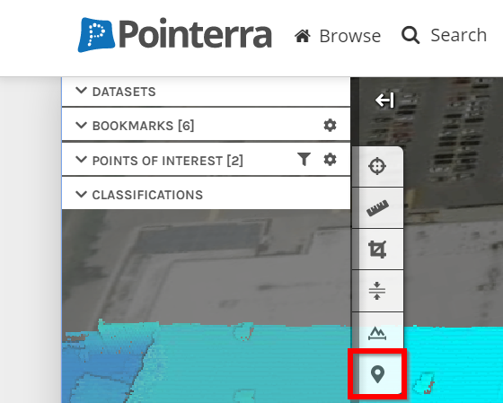 All POIs appear in the Points of Interest tab in the left panel. From here, the properties of the POI can be edited and POIs can be deleted. Left clicking on a POI will set the 3D view to the saved viewpoint of the POI.