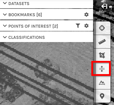 The Vertical Cropping Tool allows you to set a maximum height and minimum height for points to be view-able in the 3D viewer. The tool can be accessed from the tools palette.
