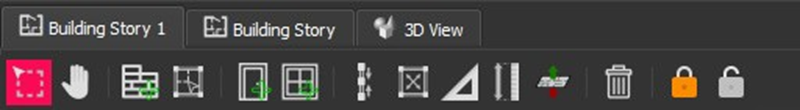 When you open BIM model in the viewport, there is a tab for each 2D story, and another for the 3D model. All tabs have a toolbar, context menu, and navigation instructions at the bottom.