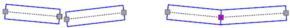 - Where the nodes of two or more elements are at the same point, they are pink; if they are just near, they are gray. To connect existing nodes, roll the mouse wheel to zoom in, then click and drag one of them until it overlays the other: