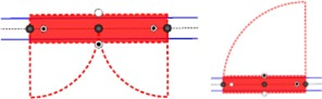 - To add opening directions to a door, click on it to see additional controls. Click in one or both white nodes at the end to specify single or double door, and click one of the nodes along the edge to show the direction of opening: