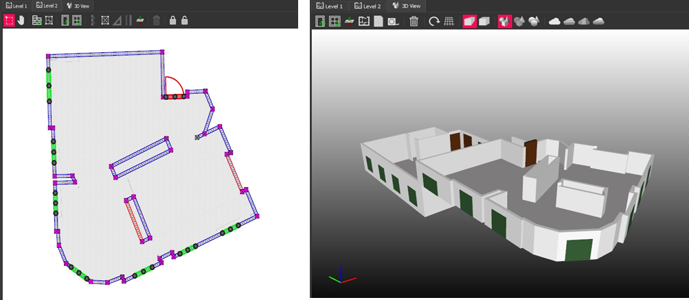 - Delete any unwanted floor slabs, and shift or adjust wall positions if necessary.