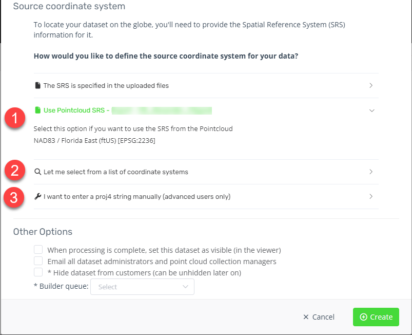 - Select 'let me select from a list of coordinate systems' and add the applicable coordinate system options.