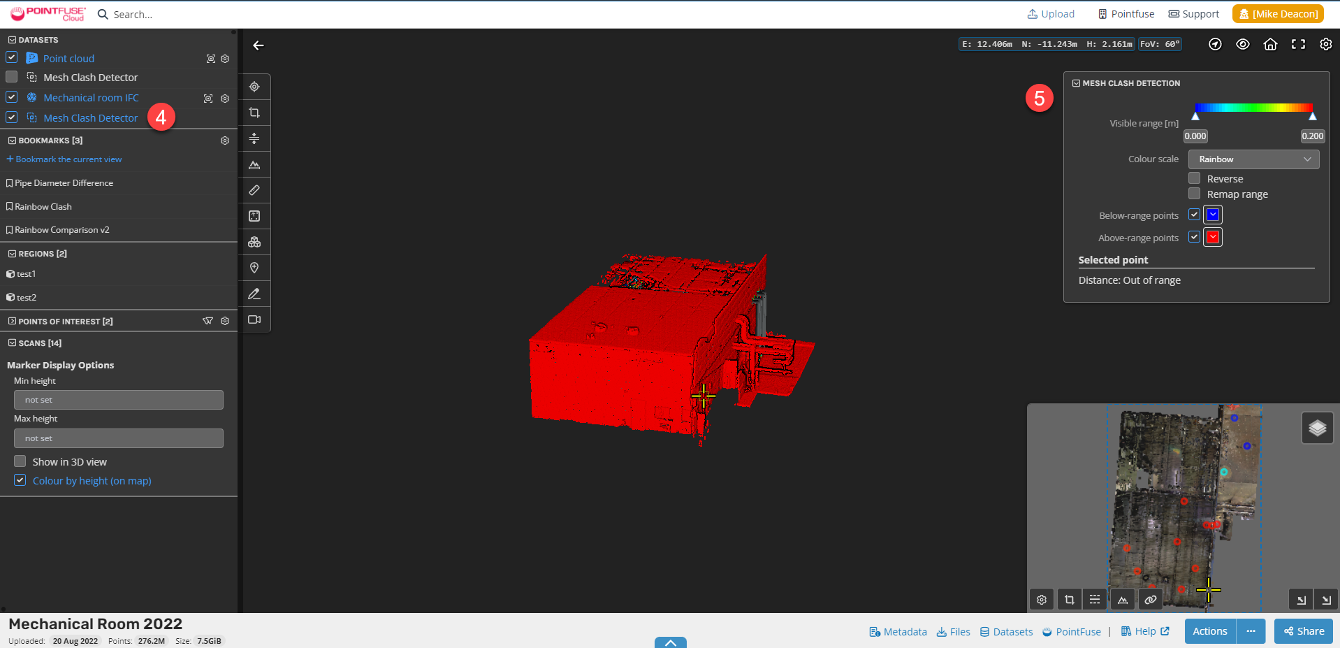Users can run a Heat Map analytic between the point cloud and either the PointFuse generated 3D model or an independently uploaded 3D model.