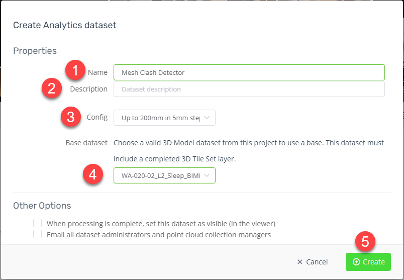 - Select the applicable Config from the available list (the config is a combination of the maximum 3D distance for comparison and the intervals within the maximum distance that differences are calculated).